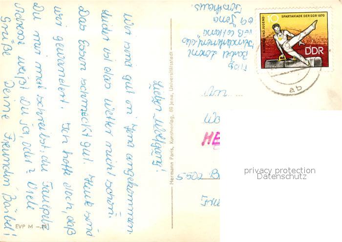 73081935 alte Postkarte Jena Thueringen Blick vom Hotel International Nachtaufnahme Wappen Universitaetsstadt postalisch gelaufen Erhaltung siehe scans [FriedD77] KatCode: 11110016053000