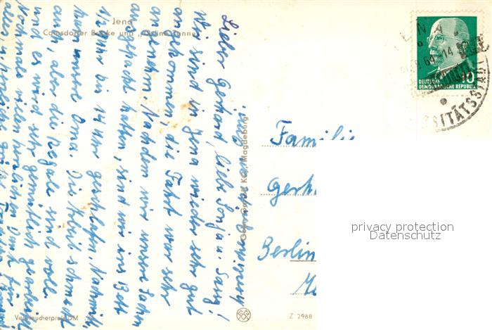 73102049 alte Postkarte Jena Thueringen Camsdorfer Bruecke Gruene Tanne postalisch gelaufen Erhaltung siehe scans [KathaD81] KatCode: 11110016053000