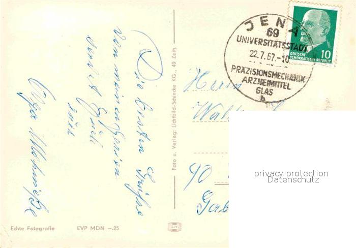 72728450 alte Postkarte Jena Thueringen Carl Zeiss Platz Stadtkirche Markt Rathaus Johannistor Hotel International postalisch gelaufen Erhaltung siehe scans [FriedD77] KatCode: 11110016053000