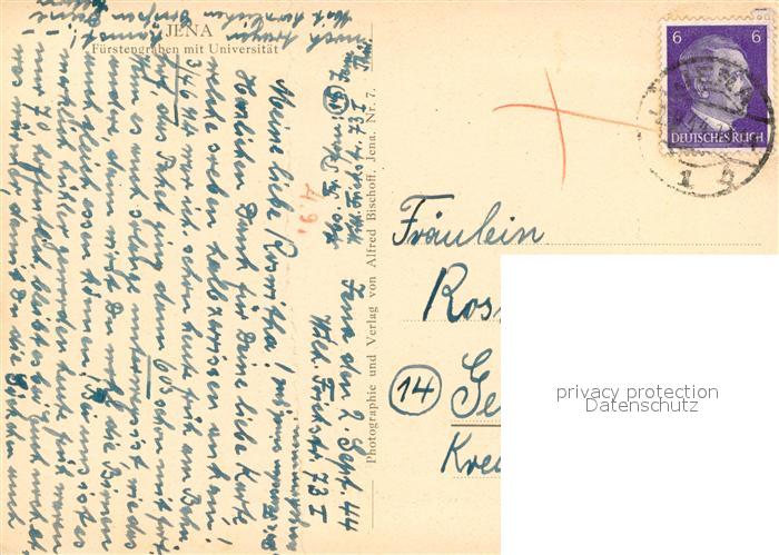 73739669 alte Postkarte Jena Thueringen Fuerstengraben postalisch gelaufen Erhaltung siehe scans [FriedD77] KatCode: 11110016053000