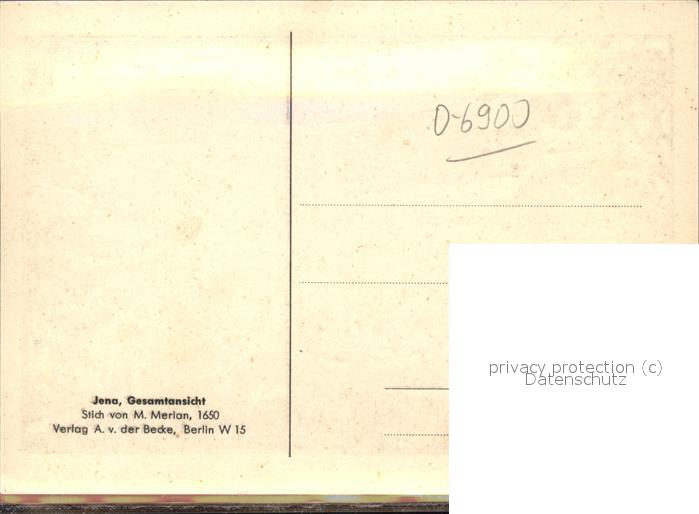 41468015 JENA Thueringen Gesamtansicht Stich von Merian 1650 postalisch nicht gelaufen Erhaltung siehe scans Alte Ansichtskarte Postkarte hz_L Katcode 11110016053000