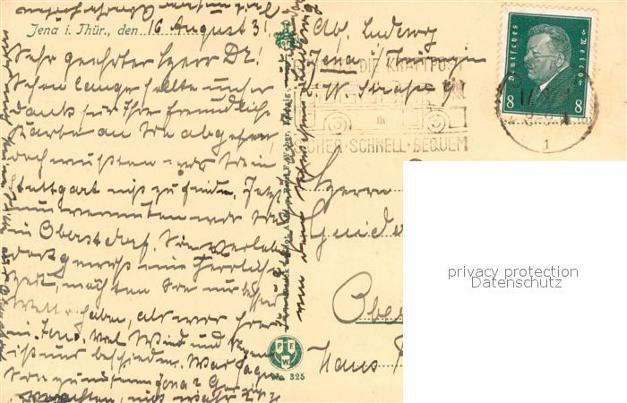 73745786 alte Postkarte Jena Thueringen Gesamtansicht postalisch gelaufen Erhaltung siehe scans [LiesaD40] KatCode: 11110016053000