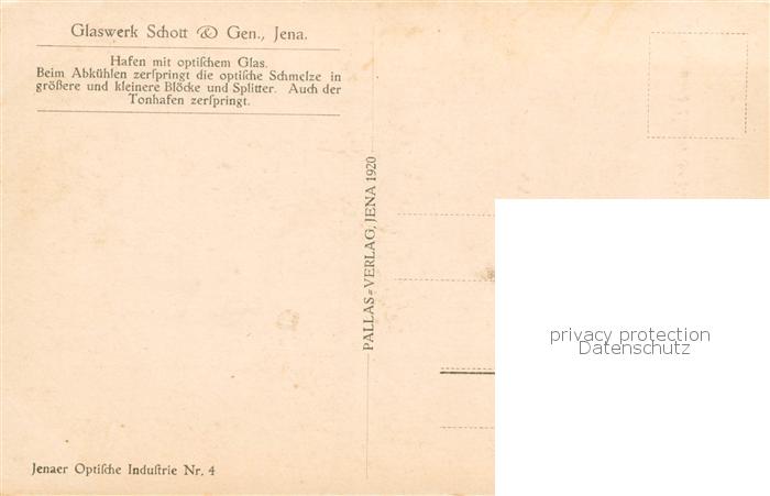 73821526 Jena Thueringen Glaswerk Schott und Gen Hafen mit optischem Glas postalisch nicht gelaufen Erhaltung siehe scans [WerneD78] KatCode: 11110016053000