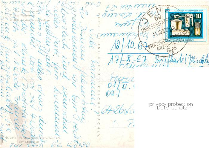73874144 alte Postkarte Jena Thueringen Hotel International Zeiss Planetarium Zeiss Hochhaus postalisch gelaufen Erhaltung siehe scans [WerneD78] KatCode: 11110016053000