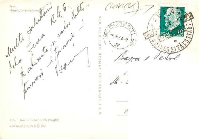 73895241 alte Postkarte Jena Thueringen Hotel International postalisch gelaufen Erhaltung siehe scans [WerneD78] KatCode: 11110016053000