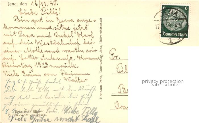 73584161 alte Postkarte Jena Thueringen Im Paradies Schwanenbruecke Saale Jenzig postalisch gelaufen Erhaltung siehe scans [KathaD81] KatCode: 11110016053000