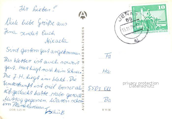 73064653 alte Postkarte Jena Thueringen Johannisstrasse Uni Hochhaus Johannistor Rathaus Zentraler Platz Denkmal postalisch gelaufen Erhaltung siehe scans [FriedD77] KatCode: 11110016053000