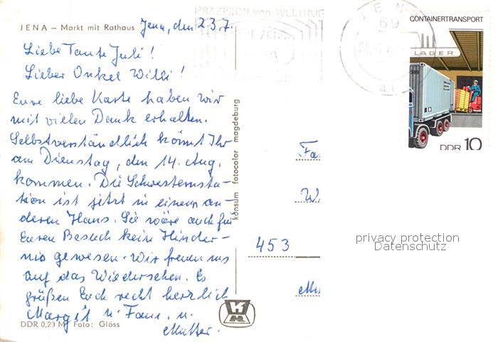 72949353 alte Postkarte Jena Thueringen Markt mit Rathaus postalisch gelaufen Erhaltung siehe scans [FriedD77] KatCode: 11110016053000