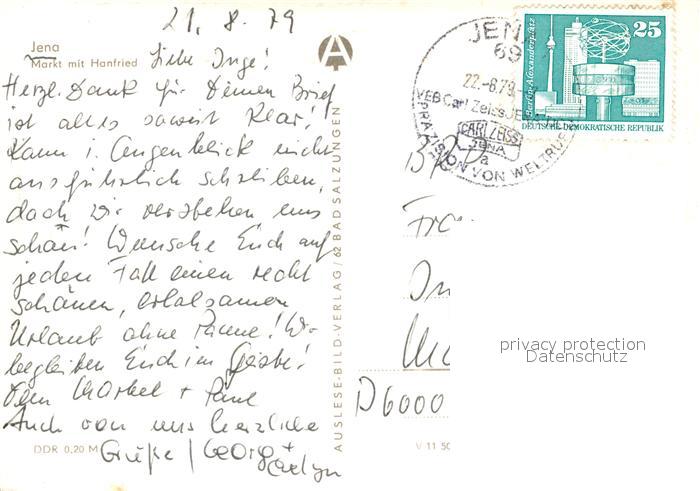73097091 alte Postkarte Jena Thueringen Marktplatz Hanfried postalisch gelaufen Erhaltung siehe scans [KathaD81] KatCode: 11110016053000