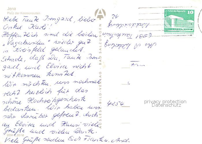 72987712 alte Postkarte Jena Thueringen Platz der Kosmonauten postalisch gelaufen Erhaltung siehe scans [LiesaD40] KatCode: 11110016053000