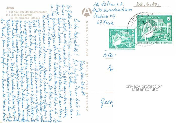 72627726 alte Postkarte Jena Thueringen Platz der Kosmonauten Johannisstrasse Hist Rathaus postalisch gelaufen Erhaltung siehe scans [WerneD78] KatCode: 11110016053000