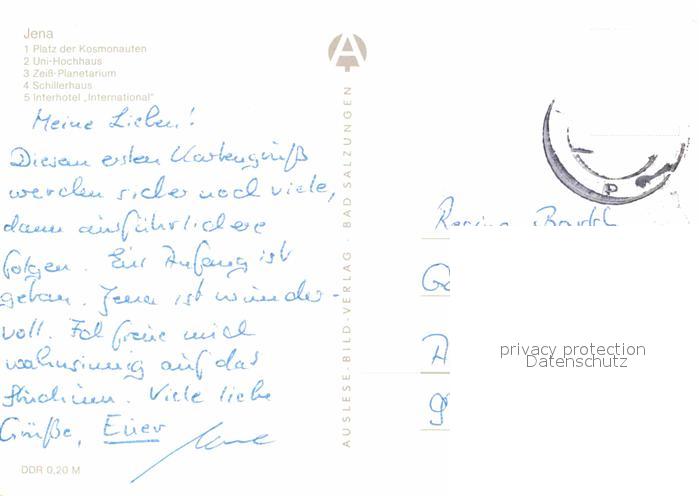 72616718 alte Postkarte Jena Thueringen Platz der Kosmonauten Uni Hochhaus Zeiss Planetarium Schillerhaus Interhotel International postalisch gelaufen Erhaltung siehe scans [WerneD78] KatCode: 11110016053000