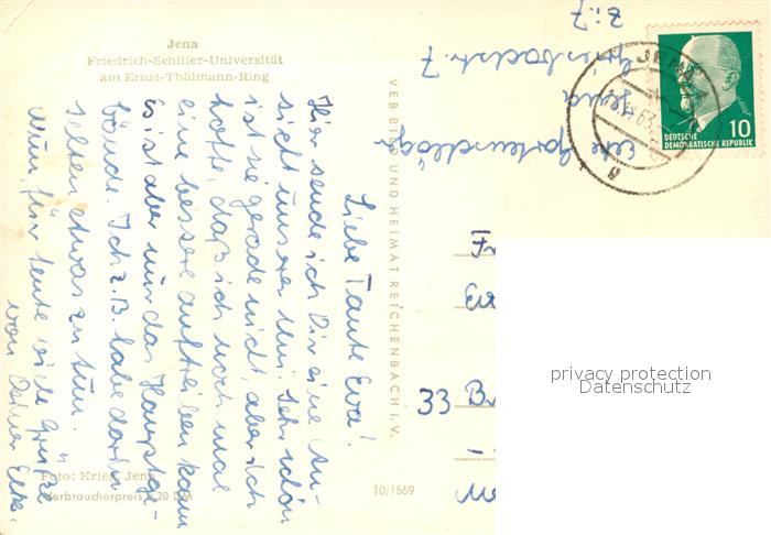 73075943 alte Postkarte Jena Thueringen Universitaet postalisch gelaufen Erhaltung siehe scans [KathaD81] KatCode: 11110016053000