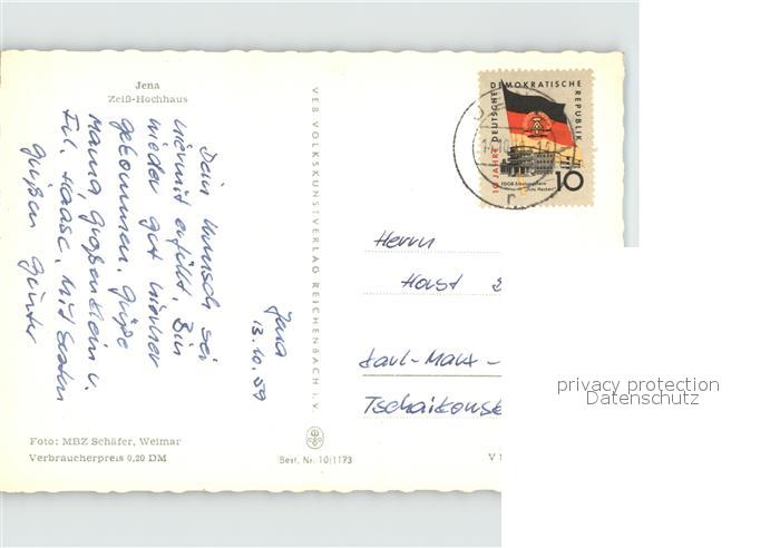 72473362 alte Postkarte Jena Thueringen Zeiss-Hochhaus postalisch gelaufen Erhaltung siehe scans KatCode: 11110016053000