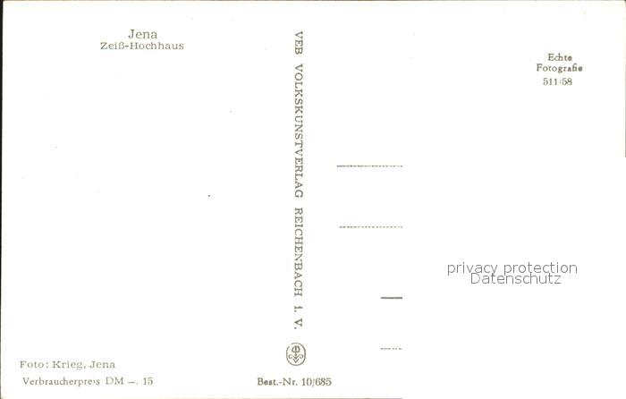 72521972 Jena Thueringen Zeiss-Hochhaus postalisch nicht gelaufen Erhaltung siehe scans KatCode: 11110016053000