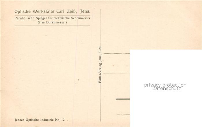 33549068 Jena Thueringen Zeisswerke Scheinwerferspiegel Jenaer Optische Industrie Nr. 12 postalisch nicht gelaufen Erhaltung siehe scans [FriedD77] KatCode: 11110016053000