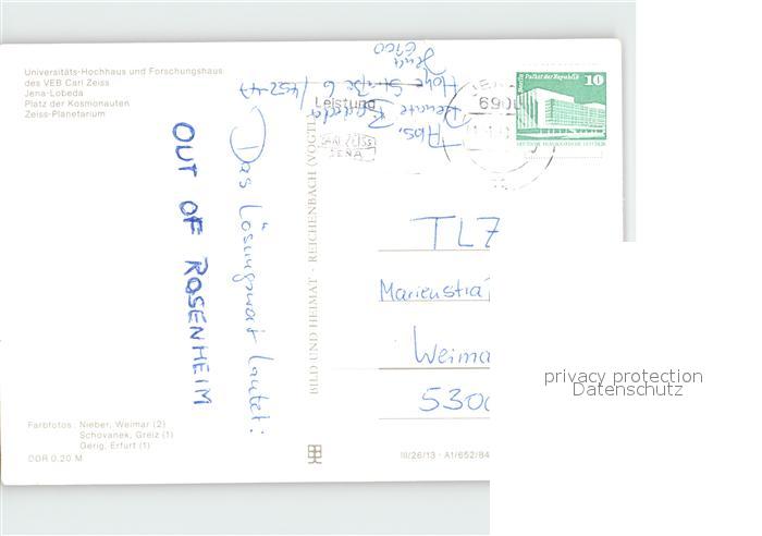 72302129 alte Postkarte Jena VEB Carl Zeiss Lobeda Platz-der-Kosmonauten Zeiss-Planetarium postalisch gelaufen Erhaltung siehe scans KatCode: 11110016053000