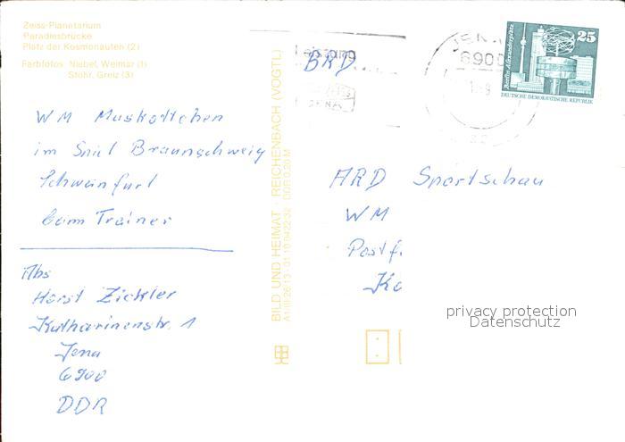 72415449 alte Postkarte Jena Zeiss Planetarium Platz der Kosmonauten Paradiesbruecke postalisch gelaufen Erhaltung siehe scans KatCode: 11110016053000