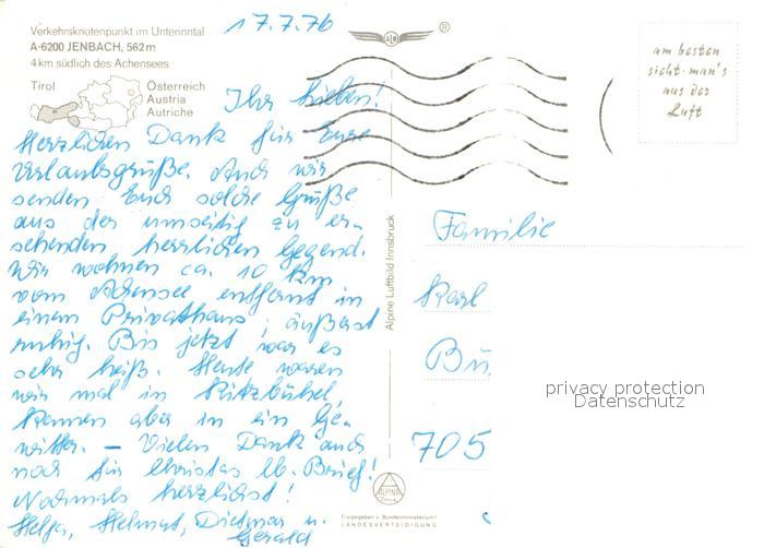 73667784 alte Postkarte Jenbach Tirol Fliegeraufnahme mit Achensee Maurach und Rofangebirge postalisch gelaufen Erhaltung siehe scans [WerneD78] KatCode: 11390335070917