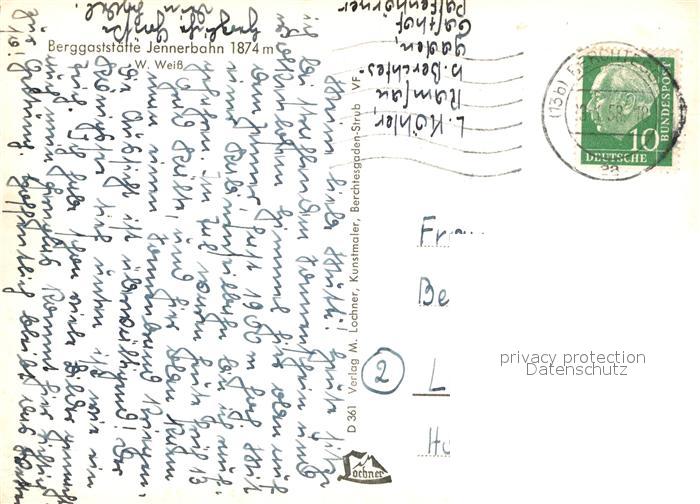 72987362 alte Postkarte Jenner Berchtesgaden Berggaststaette Jennerbahn mit Schneibstein postalisch gelaufen Erhaltung siehe scans [WerneD78] KatCode: 11110009172116