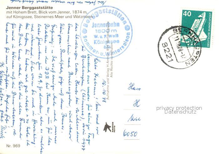 73244084 alte Postkarte Jenner Berchtesgaden Berggaststaette Koenigsee Watzmann Steinernes-Meer postalisch gelaufen Erhaltung siehe scans [LiesaD40] KatCode: 11110009172116