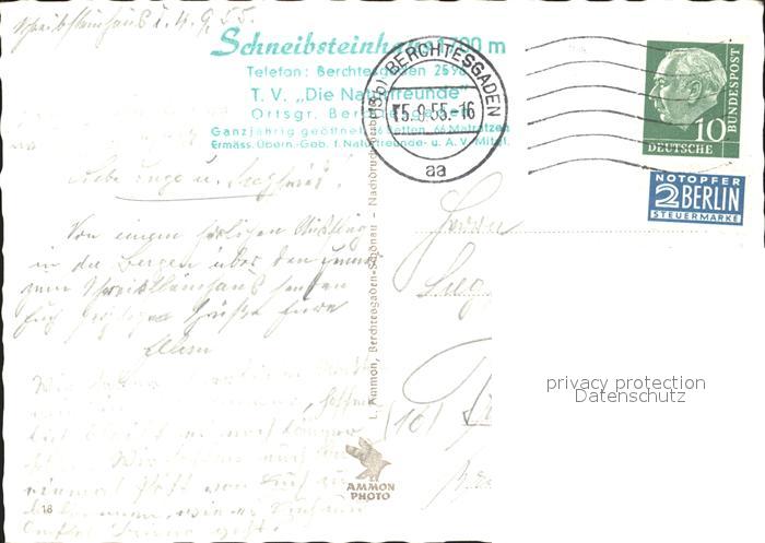 72208569 alte Postkarte Jenner Berchtesgaden Schneibsteinhaus postalisch gelaufen Erhaltung siehe scans KatCode: 11110009172116