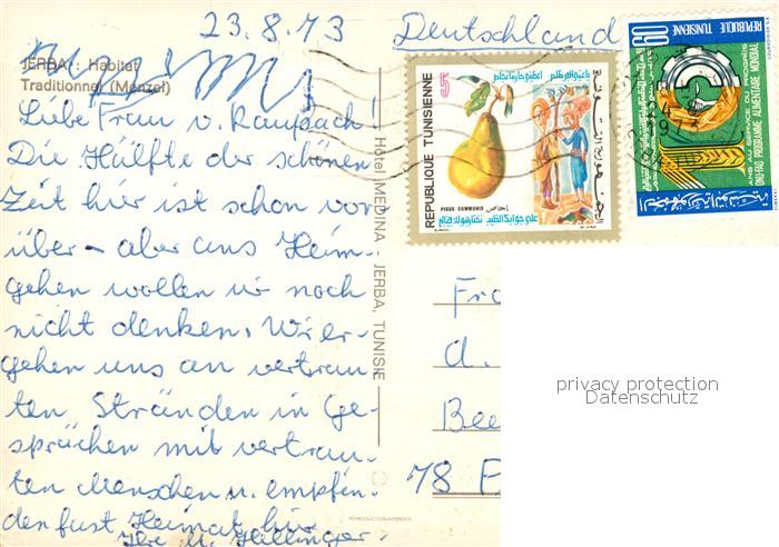 old postcard Jerba Habitat traditionnel postalisch gelaufen Erhaltung siehe scans [WerneD78]
