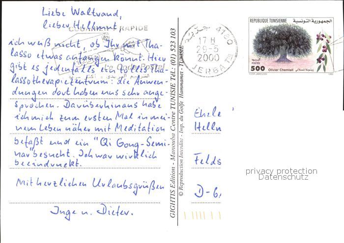 alte Postkarte Jerba Hotel Athenee Palace Robinson at night postalisch gelaufen Erhaltung siehe scans