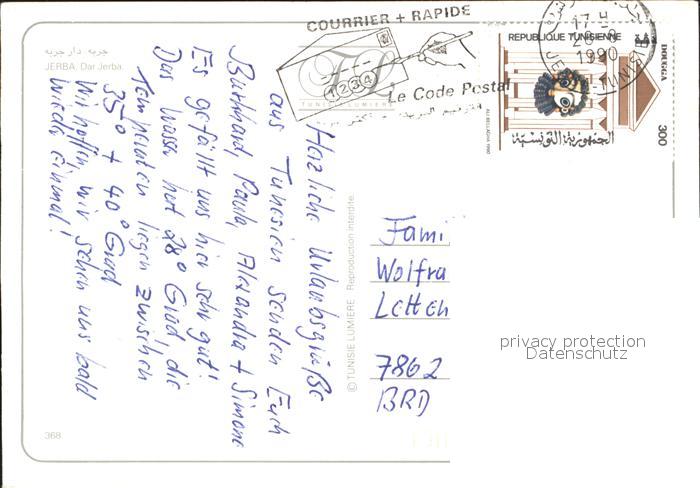 old postcard Jerba Hotel Dar Jerba Strand Swimmingpool postalisch gelaufen Erhaltung siehe scans