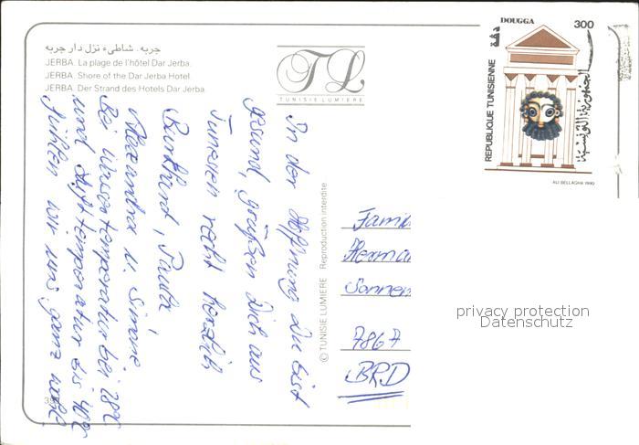 alte Postkarte Jerba Hotel Dar Jerba Swimmingpool Strand postalisch gelaufen Erhaltung siehe scans