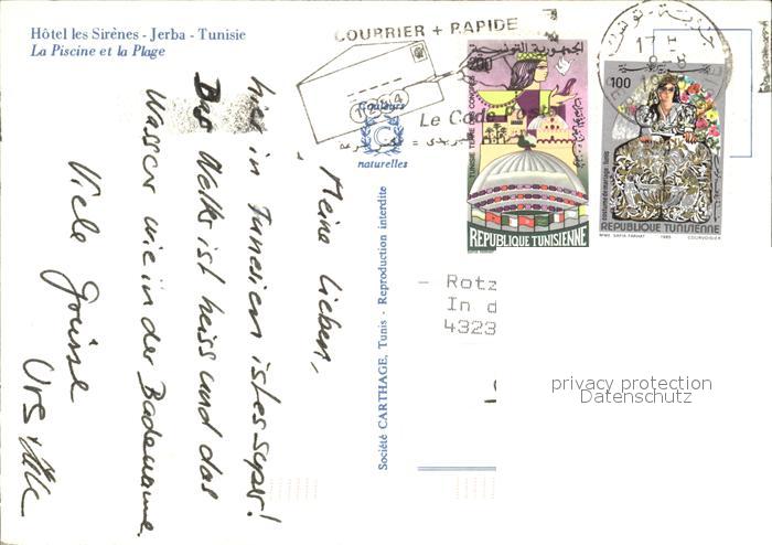 old postcard Jerba Schwimmbad Strand postalisch gelaufen Erhaltung siehe scans [AndreD76 kt121box]