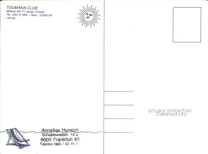 Jerba Toumana Club postalisch nicht gelaufen Erhaltung siehe scans