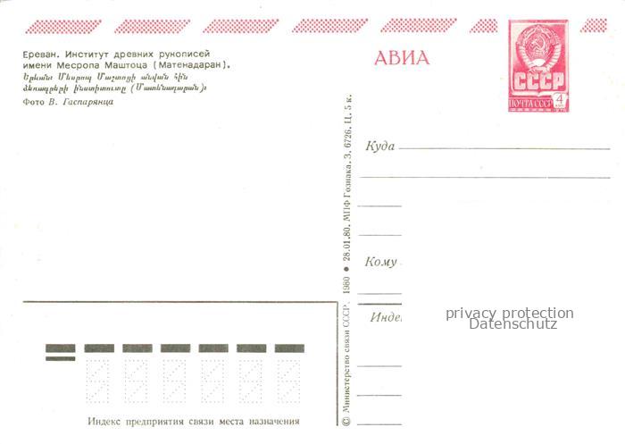 74042184 Jerewan Armenia Institut Schrieftsteller Mesropa Maschtoza Matenadaran postalisch nicht gelaufen Erhaltung siehe scans [IrynaD87] Iryn Katcode 13020