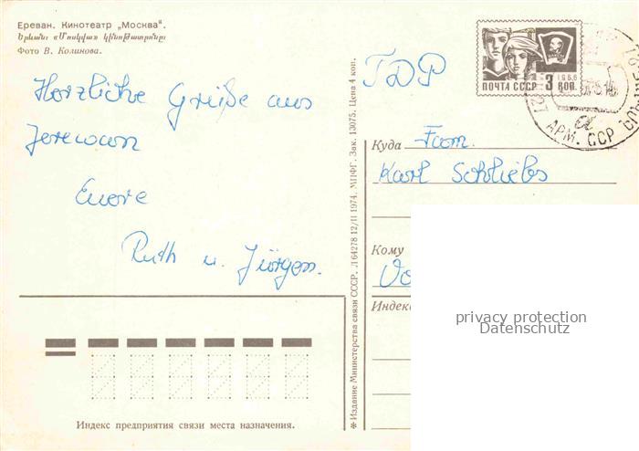 74042008 old postcard Jerewan Armenia Kinotheater Moskva postalisch gelaufen Erhaltung siehe scans [IrynaD87] KatCode: 13020