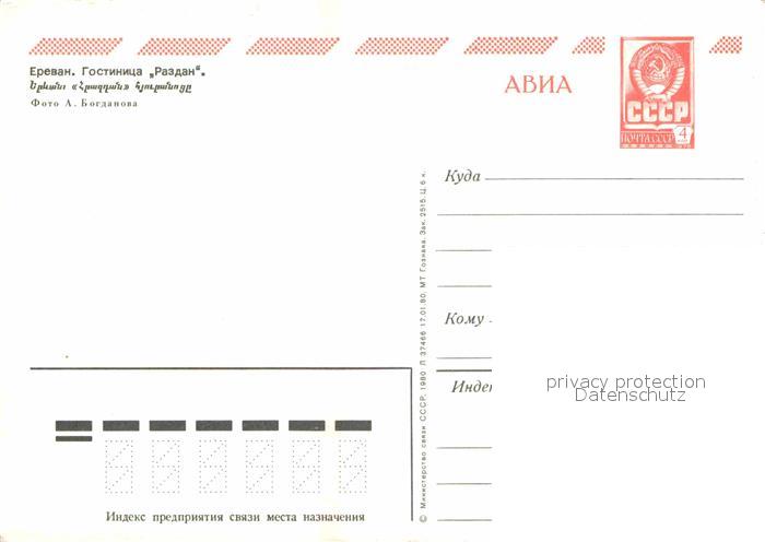 Jerewan Hotel Rasdan postalisch nicht gelaufen Ganzsache (eingedruckte Briefmarke) Erhaltung siehe scans [NatalD47]