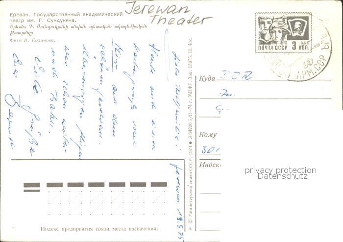 old postcard Jerewan Theater postalisch gelaufen Erhaltung siehe scans