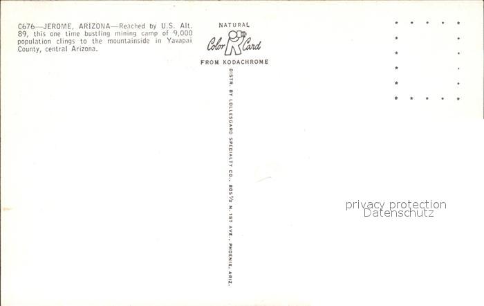 72486052 Jerome Arizona postalisch nicht gelaufen Erhaltung siehe scans KatCode: 14140030000000