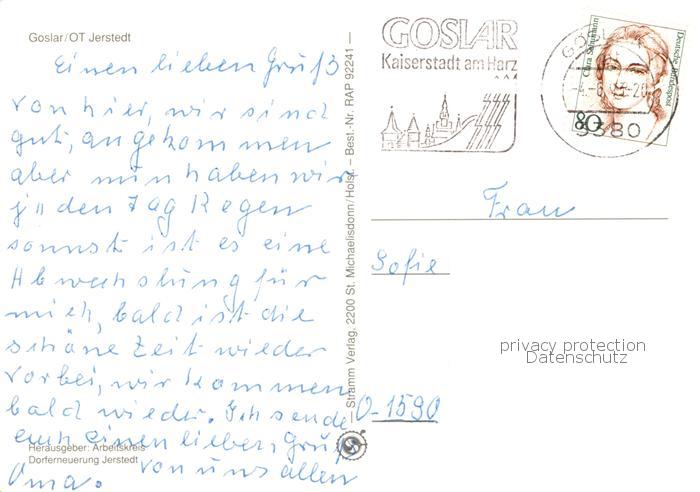 73839759 alte Postkarte Jerstedt Skulptur Ortspartie Kirche Brunnen postalisch gelaufen Erhaltung siehe scans [FriedD77] KatCode: 11110003153005