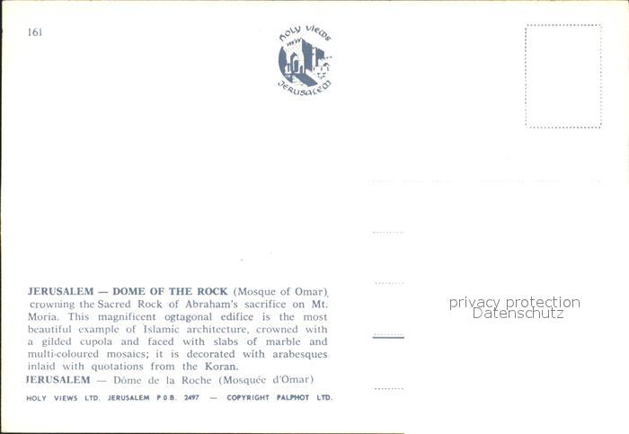 Jerusalem Yerushalayim Dome Rock postalisch nicht gelaufen Erhaltung siehe scans