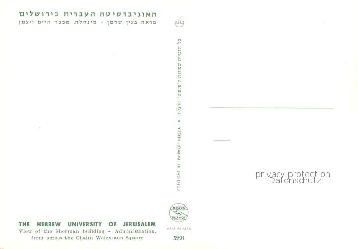 Jerusalem Yerushalayim Hebrew University Sherman Building Administration postalisch nicht gelaufen Erhaltung siehe scans [FriedD77]