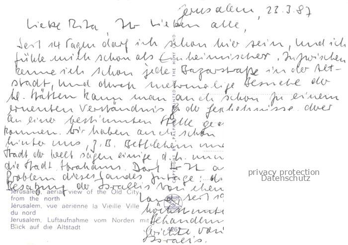 74096924 old postcard Jerusalem Yerushalayim Israel Altstadt Fliegeraufnahme postalisch gelaufen Erhaltung siehe scans [WerneD78] KatCode: 13080
