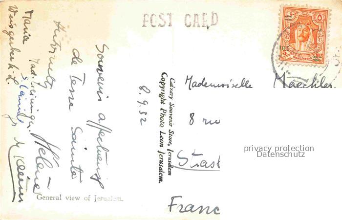 74128476 old postcard Jerusalem Yerushalayim Israel General view postalisch gelaufen Erhaltung siehe scans [FriedD77] KatCode: 13080