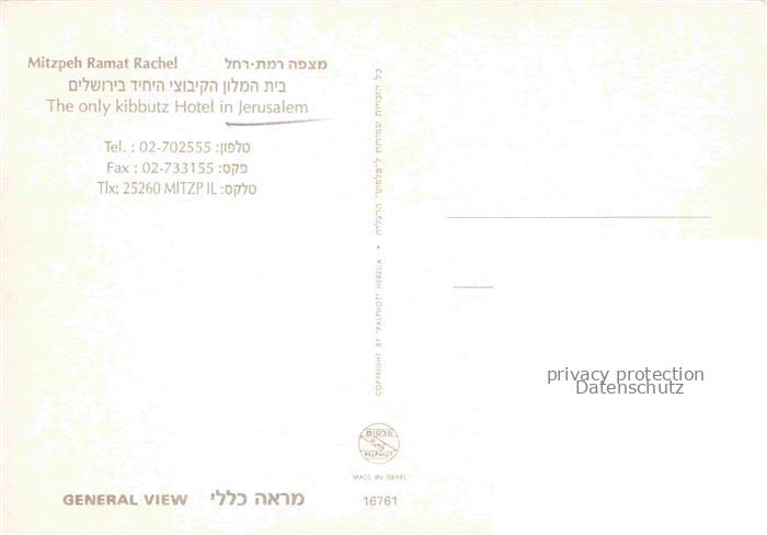 74092189 Jerusalem Yerushalayim Israel Kibbutz Hotel postalisch nicht gelaufen Erhaltung siehe scans [WerneD78] KatCode: 13080