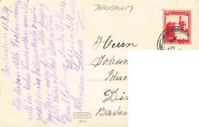 73973074 old postcard Jerusalem Yerushalayim Israel Kirche postalisch gelaufen Erhaltung siehe scans [WerneD78] KatCode: 13080