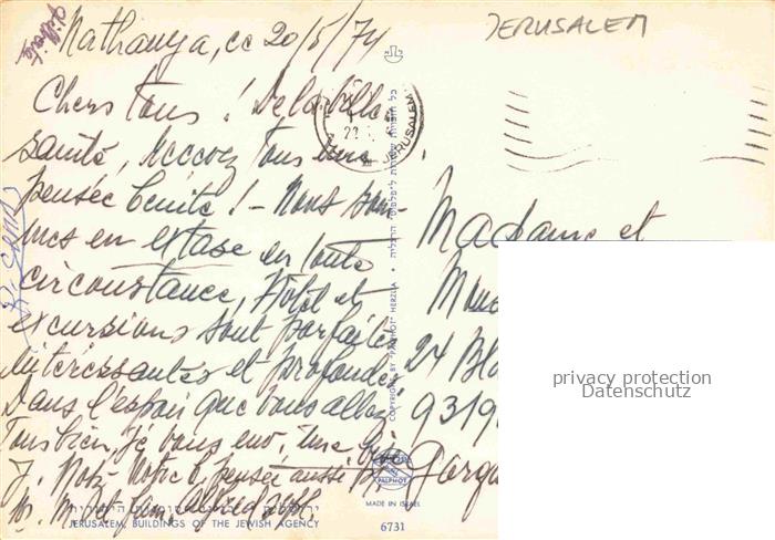 14114452 Jerusalem Yerushalayim Israel Motiv im Zentrum postalisch nicht gelaufen Erhaltung siehe scans [FriedD77] Frie Katcode 13080