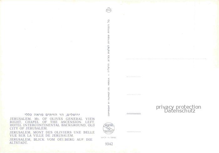 74092276 Jerusalem Yerushalayim Israel Mt. Of Olivers Altstadt postalisch nicht gelaufen Erhaltung siehe scans [IrynaD87] KatCode: 13080