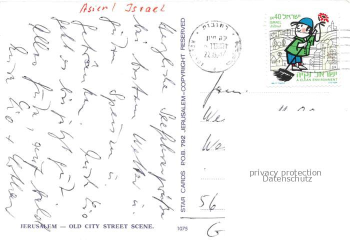 74006301 old postcard Jerusalem Yerushalayim Israel Old city street scene postalisch gelaufen Erhaltung siehe scans [FriedD77] KatCode: 13080