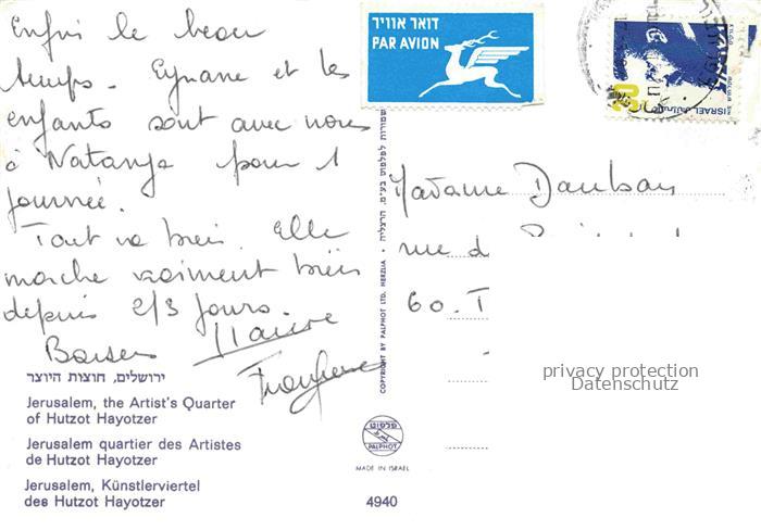 74010846 old postcard Jerusalem Yerushalayim Israel The Artists Quarter of Hutzot Hayotzer postalisch gelaufen Erhaltung siehe scans [WerneD78] KatCode: 13080