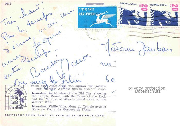 74010848 old postcard Jerusalem Yerushalayim Israel Vieille Ville Mont du Temple avec le Dome du Roc et la Mosquee de l’Aksa postalisch gelaufen Erhaltung siehe scans [WerneD78] KatCode: 13080