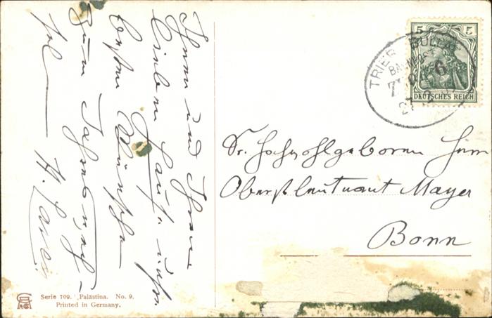 old postcard Jerusalem Yerushalayim Jerusalem Garten Gethemane Garden Jardin Kuenstler F. Perlberg postalisch gelaufen